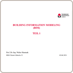 Um für alle Mitglieder die gleichen Voraussetzungen zu schaffen, führt Herr Prof. Dr.-Ing. Walter Sharmak von der TH Lübeck einen Crashkurs zum BIM-Prozess durch. Die Interessierten erhalten Einblicke in die BIM-Grundlagen, Begriffsbestimmungen, Klassen, Modelle und IFC-Standards.